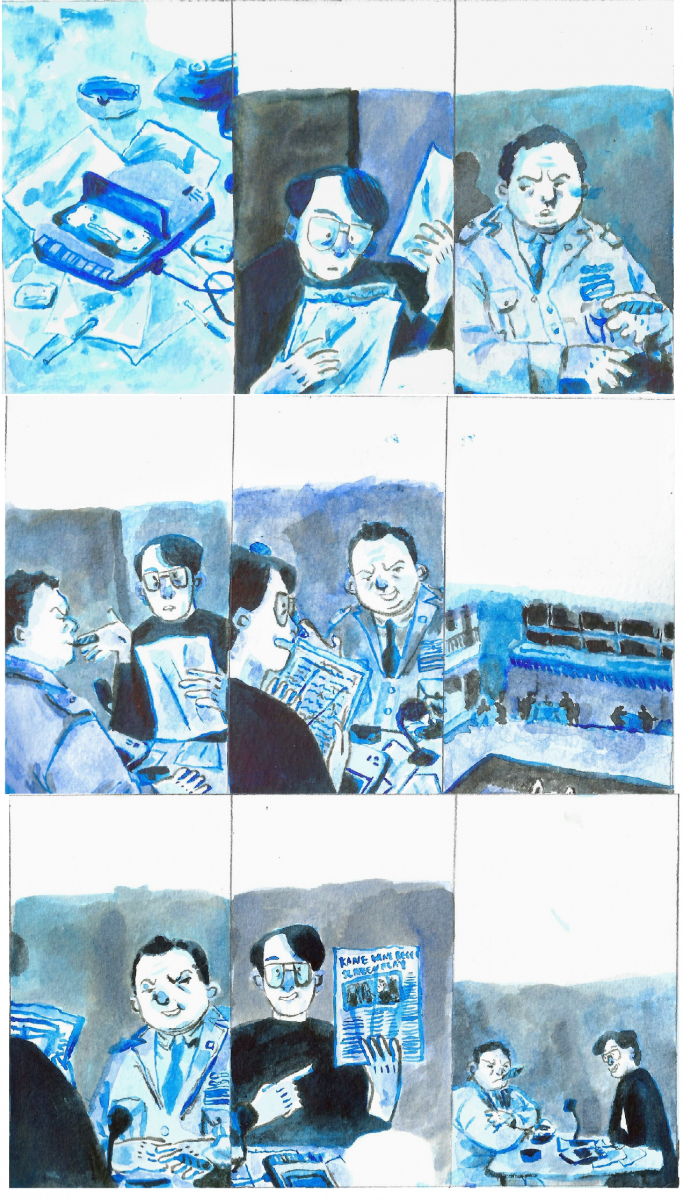 These are the watercolour and ink panels for the comic before having dialogue added, and before being compiled in the correct order in photoshop.