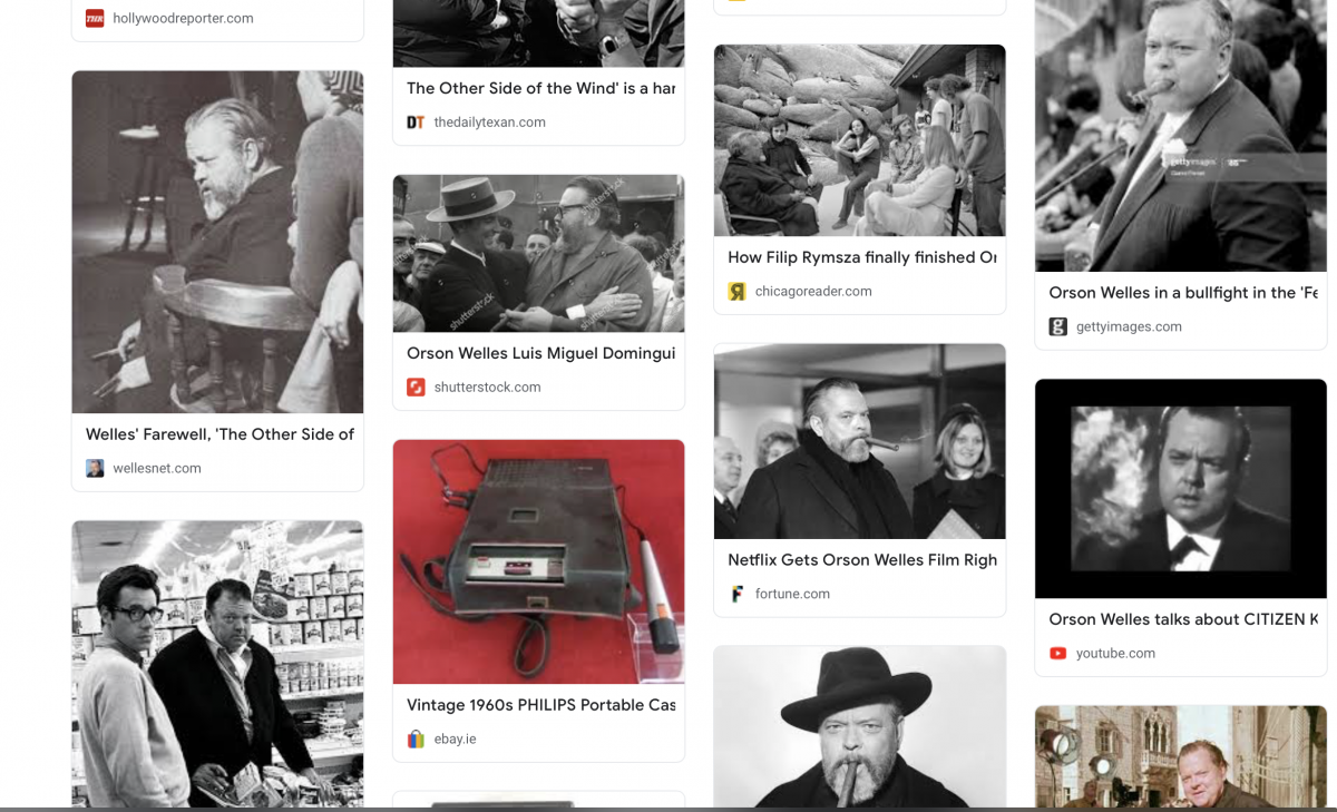 Before (formally) beginning Unit 4 we were tasked to complete a task that would be beneficial to our Unit 4 outcome, I decided to begin gathering more research/ references that would be useful when creating Project 8 (and 9's) outcome. This research was primarily visual research (photos, videos etc) but it also includes one piece of audio. These references are to help me maintain consistency when drawing the comic. ‘THIS IS ORSON WELLES’ features interviews from the late-1960s until the 1970s, so this is the period I focused on gathering research from. I gathered images of locations, objects, and Welles and Bogdanovich from the period and stored them in a Google Images Collection. I also looked at videos, including the audio from the interviews featured in 'THIS IS ORSON WELLES'.